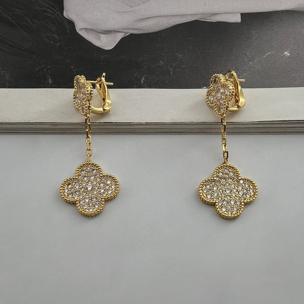 Όμορφο ζευγάρι σκουλαρίκια σε κομψό σχέδιο. Είναι κατασκευασμένο από ανοξείδωτο ατσάλι επιχρυσωμένο με ζιργκόν. Ένα εντυπωσιακό ζευγάρι σκουλαρίκια που θα απογειώσει το στυλ σας.