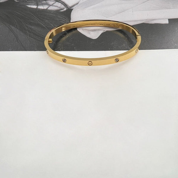 Βραχιόλι χειροπέδα από ατσάλι επιχρυσωμένο 18Κ. Είναι διακοσμημένο με ζιργκόν, σε εκπληκτικό και ιδιαίτερο σχέδιο που θα σας κάνει να ξεχωρίζετε.